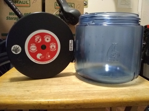 At first glance they seem like a luxury, but the pouches come in 2 serving size for $12 ea., so a pair of pouches would provide breakfast and dinner for 2 days, or dinner for 4 days, if I were cooking on tour (I still intend on no-cook meals when bikepacking). Anyway, I found the bear canisters and opened up the different boxes of the BV450's until I found one with no scratches or marks...