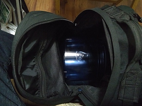 This thing was huge for being almost 2 gal, but I guessed it would still fit in the big backpack...