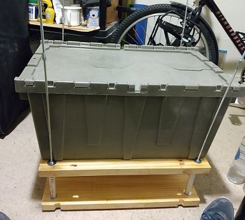 Once the cargo trunk was detached, the steel rods were placed in the corner to break down later. The D-shaped anchors on the bottom shelf and the steel braces under the top shelf were removed and can be tossed. I forgot how heavy those two slabs of wood made the whole thing...